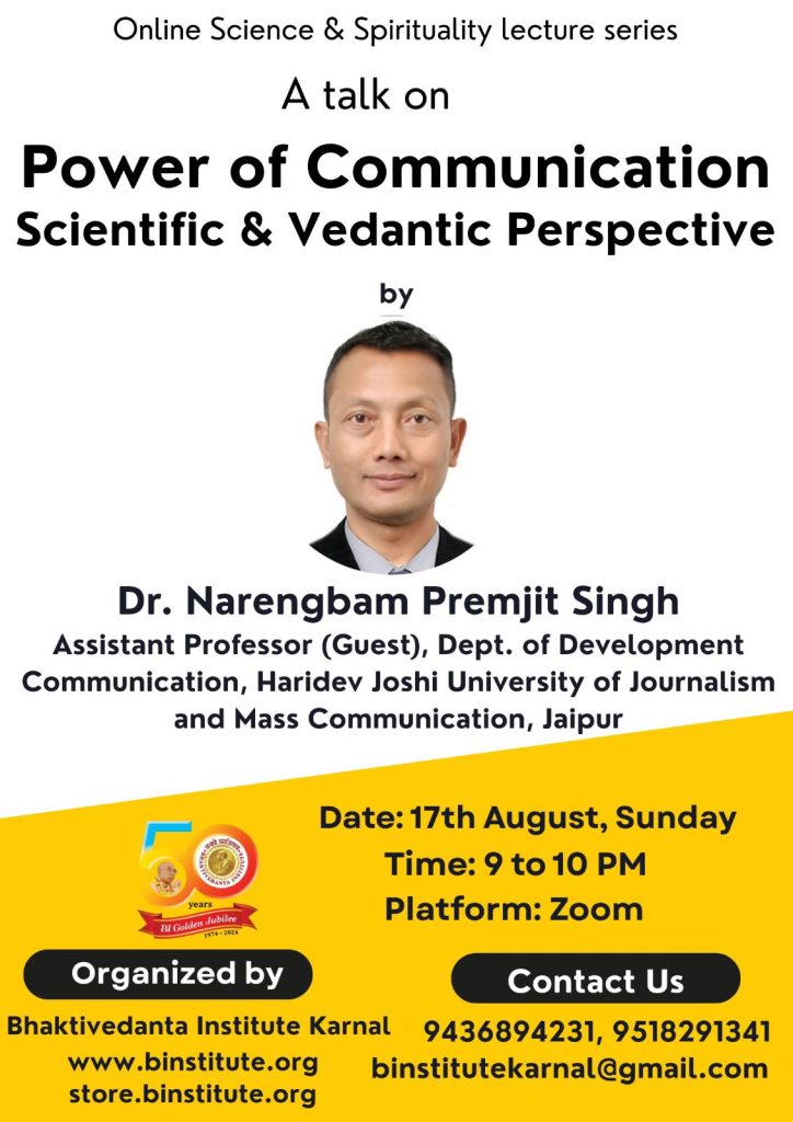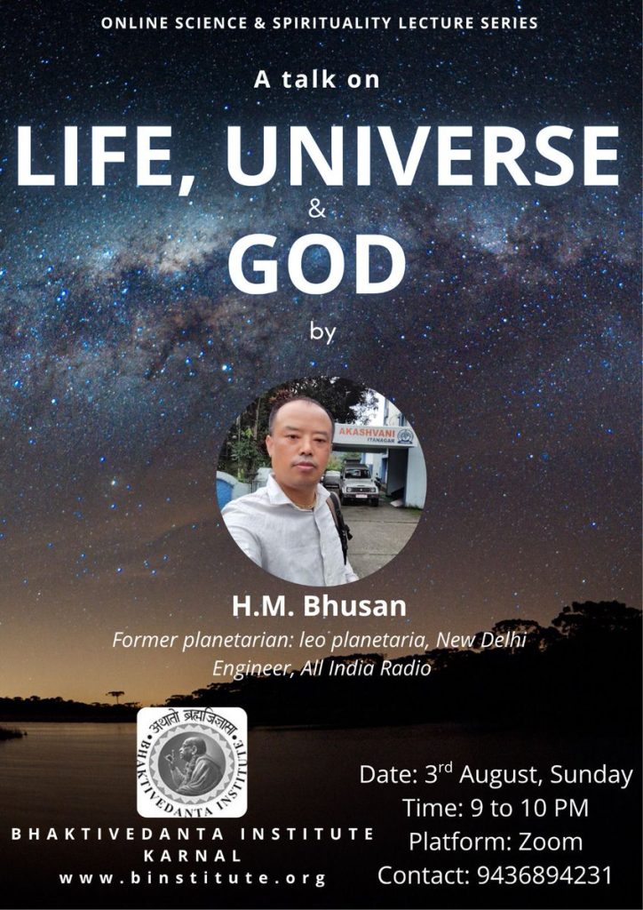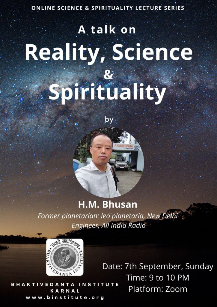 Moments of recent Online Science & Spirituality Lecture Series organized by Bhaktivedanta Institute Karnal. Title: Reality, Science & Spirituality Speaker: H M Bhusan, Former Planetarian, Leo Planetaria, New Delhi; Engineer, All India Radio Watch video: https://youtu.be/TFNzihKfmY4