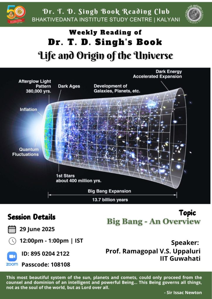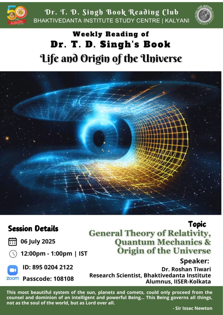 Recent online Weekly book reading session of Dr. T D Singh’s Book Reading Club Topic: General Theory of Relativity, Quantum Mechanics & Origin of the Universe Speaker: Dr. Roshan Tiwari, Research Scientist, BI Date | Time: Jul 6, ’25 | 12-1 pm See more: https://binstitute.org/tds-brc/