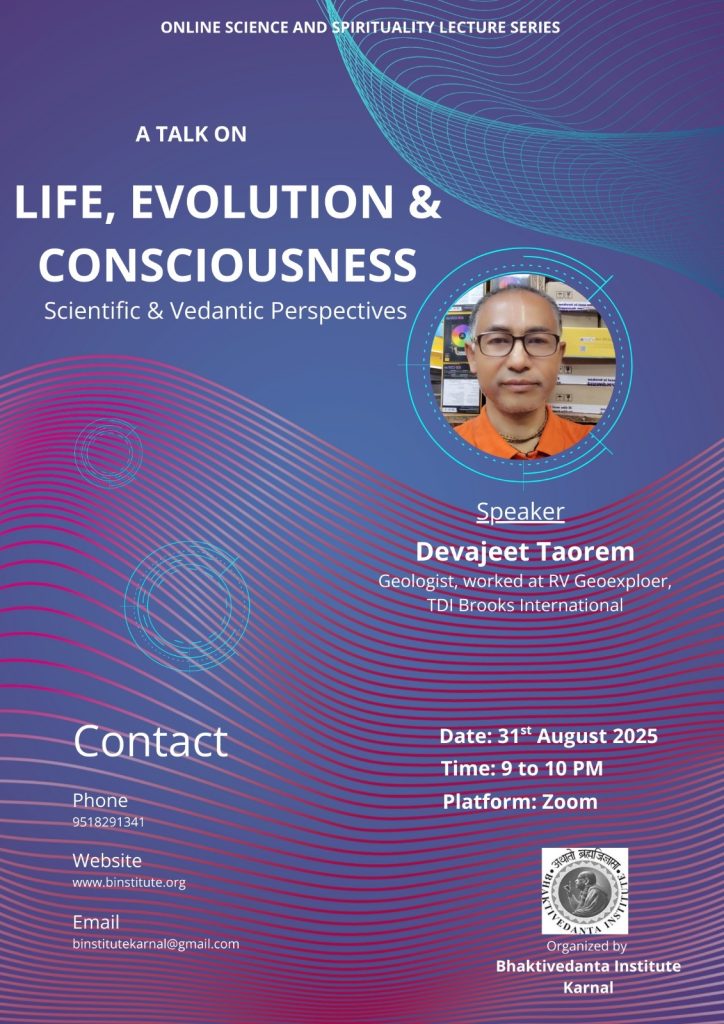 Devajeet Taorem | Recent Online Science & Spirituality Lecture Series | Bhaktivedanta Institute Karnal Recent Online Science & Spirituality Lecture Series organized by Bhaktivedanta Institute Karnal. Title: LIFE, EVOLUTION…