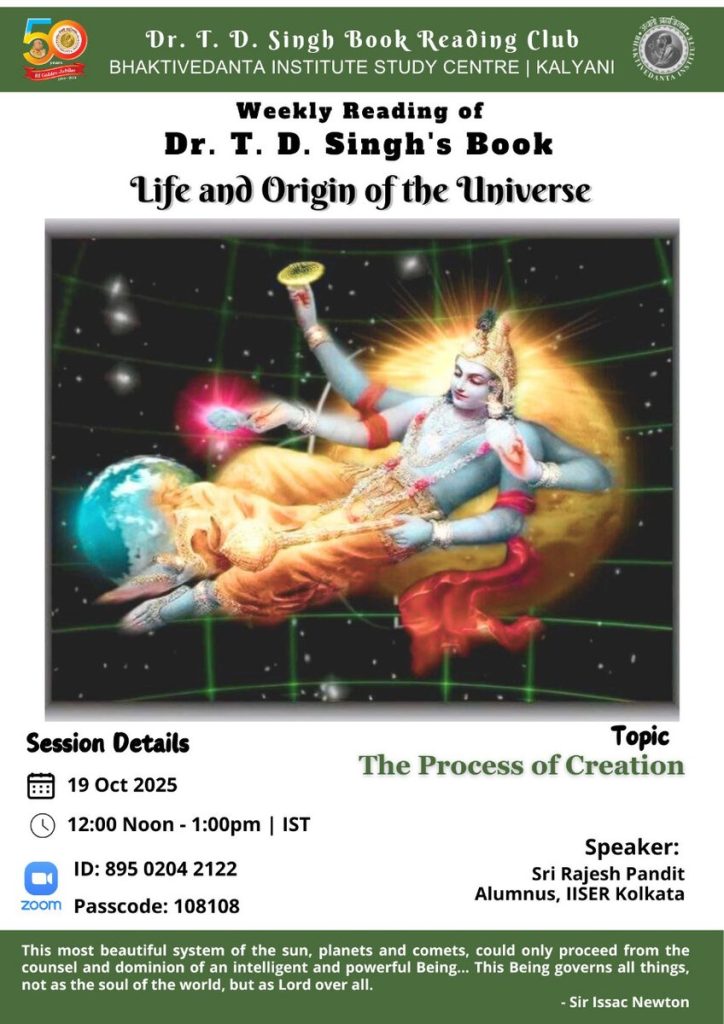 Dr. T D Singh’s Book Reading Club | 21-10-25 | Bhaktivedanta Institute Recent online Weekly book reading session of Dr. T D Singh’s Book Reading Club.. Topic:…