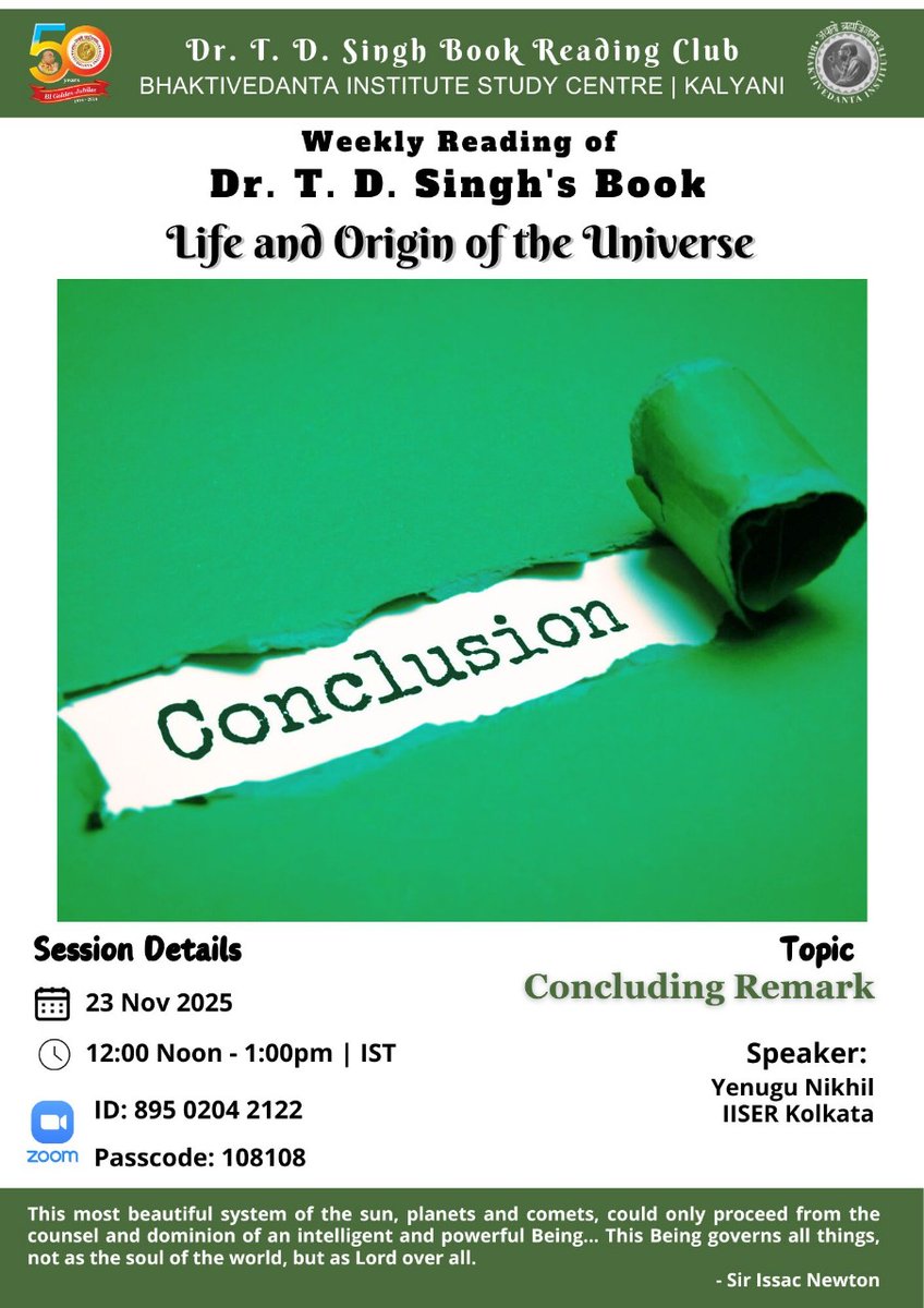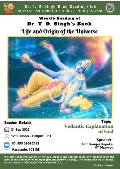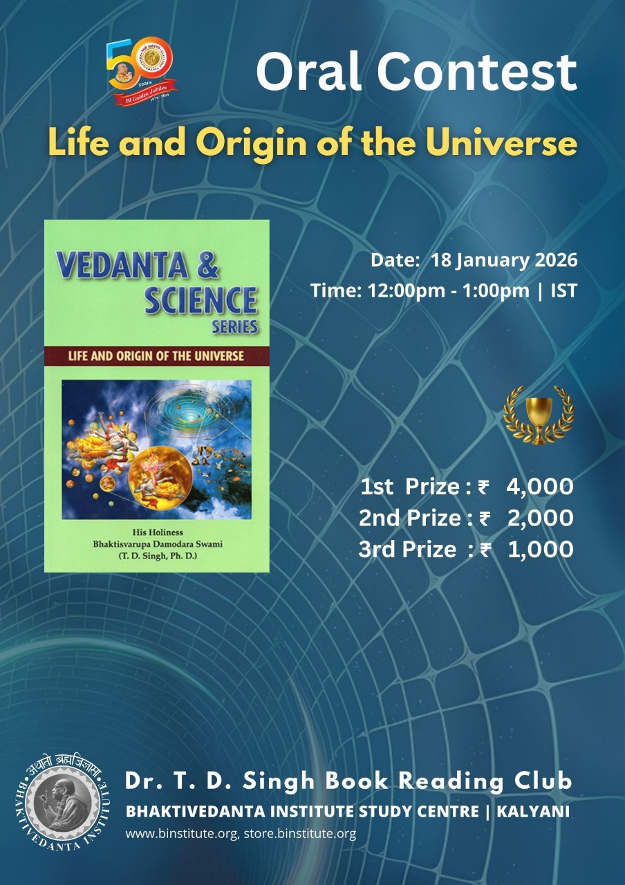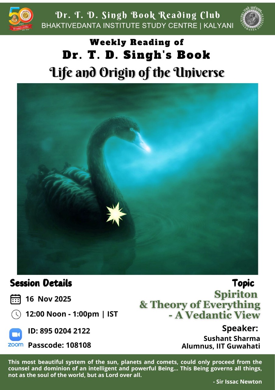 Bhaktivedanta Institute Kolkata runs a club to read (weekly) and discuss on books by renowned scientist and saint Dr. T. D. Singh. Club members read and express their opinions and benefit themselves with scientific and Spiritual perspectives.