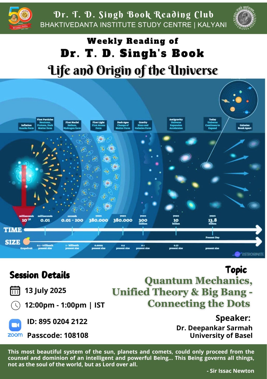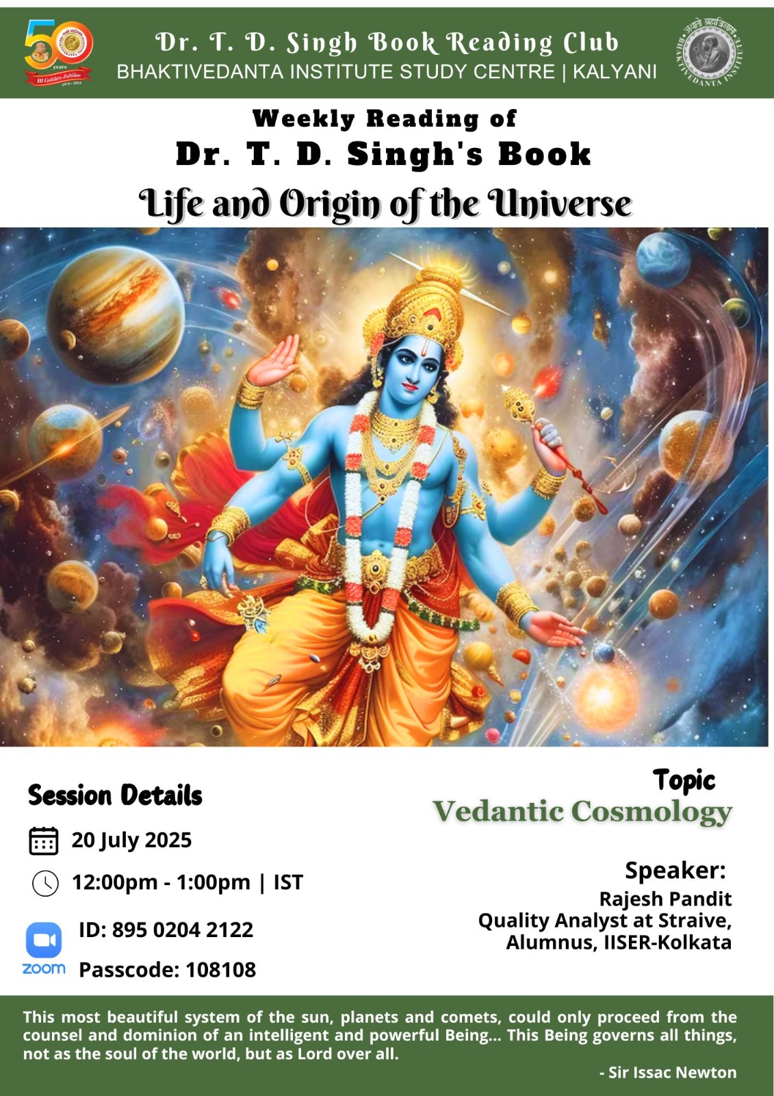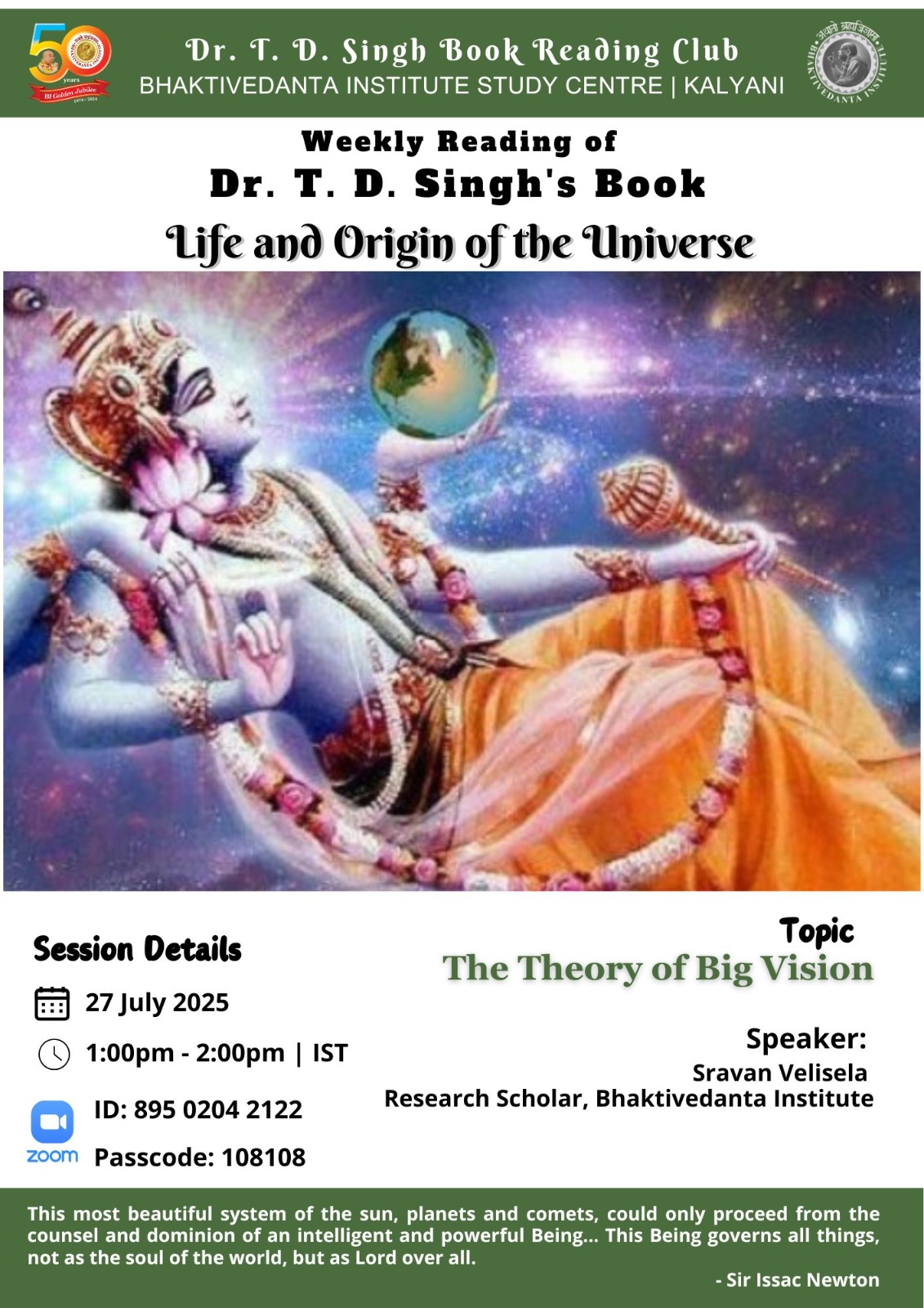 Bhaktivedanta Institute Kolkata runs a club to read (weekly) and discuss on books by renowned scientist and saint Dr. T. D. Singh. Club members read and express their opinions and benefit themselves with scientific and Spiritual perspectives.